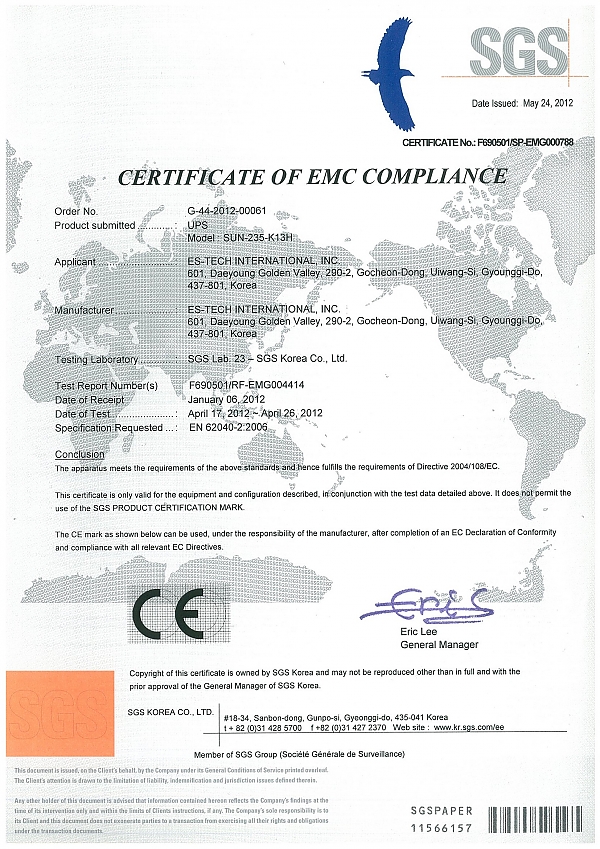SGS Certificate Of EMC Compliance