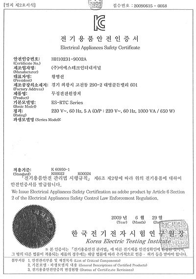 Electrical Appliances Safety Certificate > Certificate