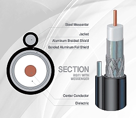 Series 6, 75ohm Single Tape & Braid wire & messenger Coaxial Drop Cable,